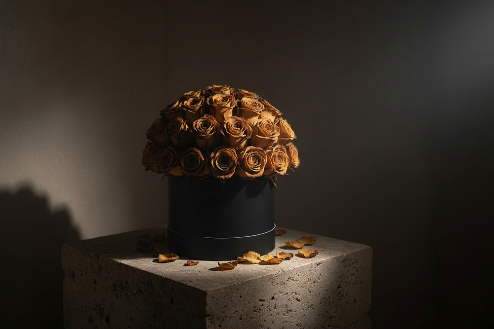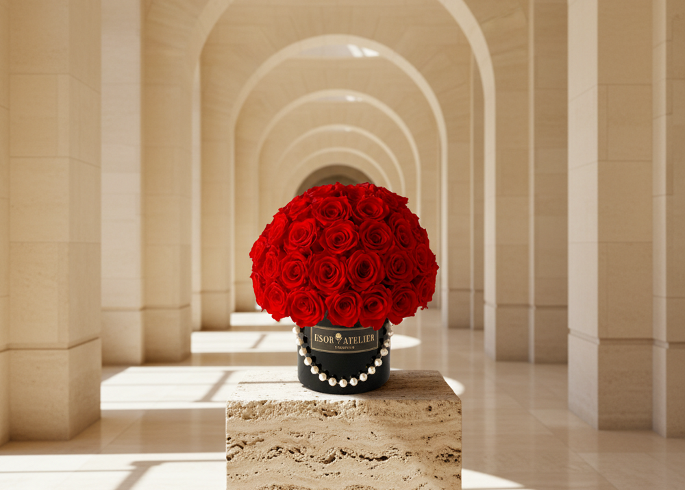 Real florals refined through a plant‑based preservation process that makes them last up to 3 years — a signature expression of the Esor Atelier aesthetic.