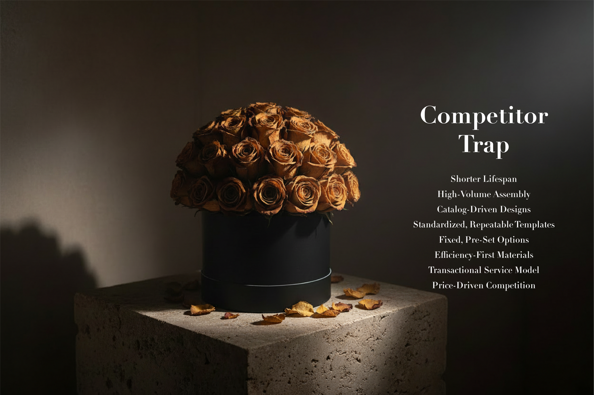 No water, no sunlight, no upkeep. Their extended lifespan reduces waste, lowers environmental impact, and offers long‑lasting beauty without the need for frequent replacements.