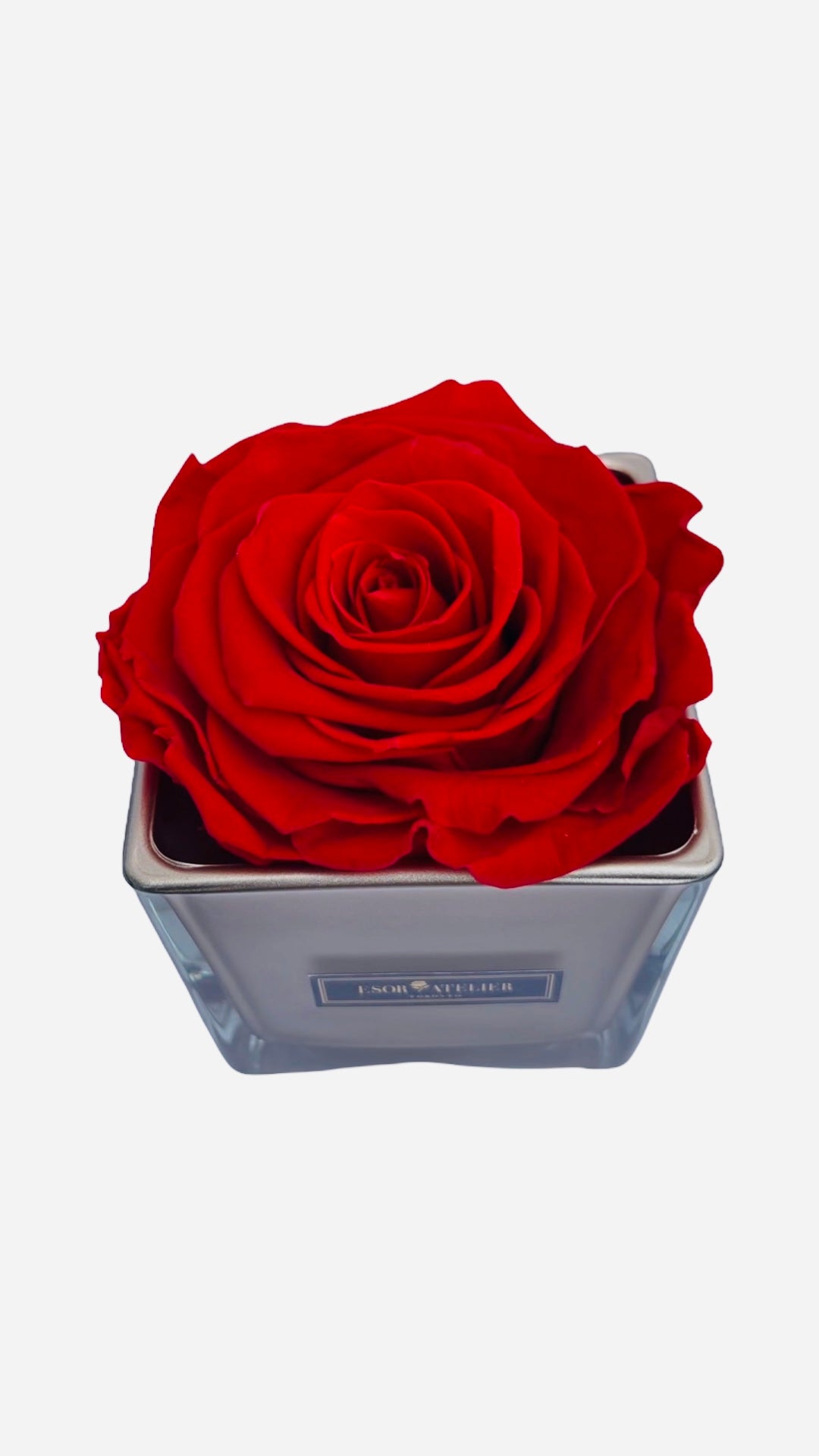 Meet our quintessential one-rose luxe vase, Veronique. It features a large 1 eternal (preserved) rose that lasts 1-3 years.