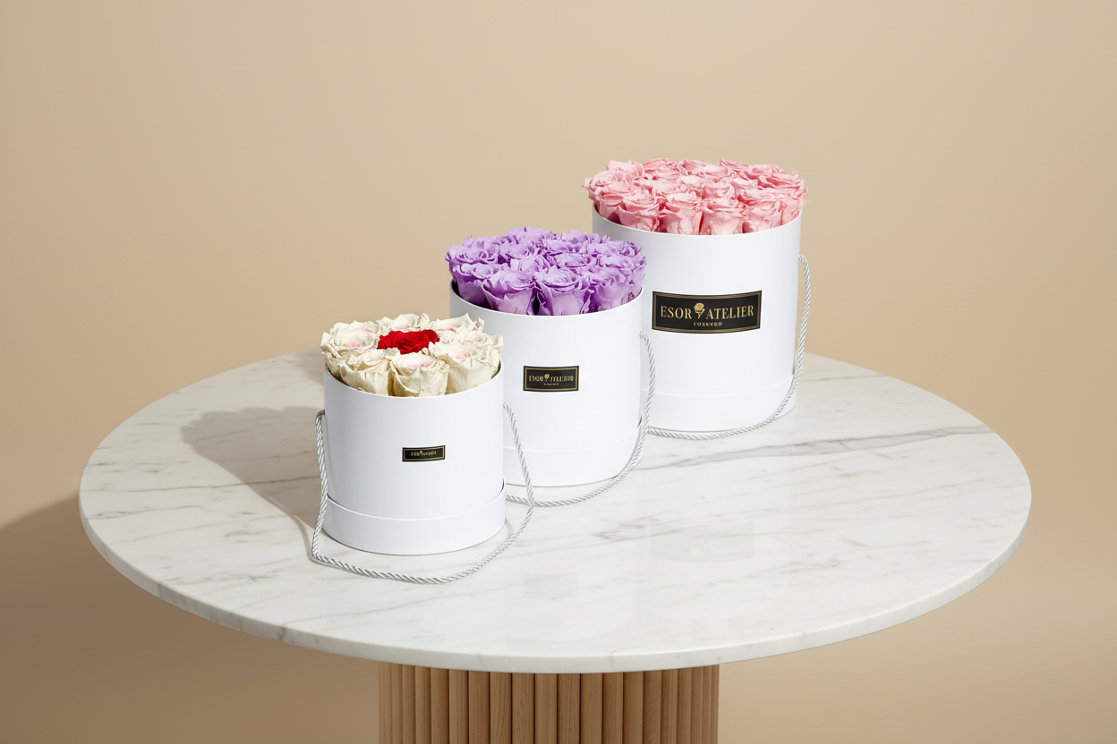 At Esor Atelier™, we understand the importance of preserving the natural beauty and elegance of flowers. Using the latest floriculture techniques, our bio-preservation process replaces the natural sap and nutrients in fresh-cut flowers with a proprietary plant-based organic formula, allowing our bio-preserved flowers, Esor Blooms™ to maintain their natural appearance for up to three years.