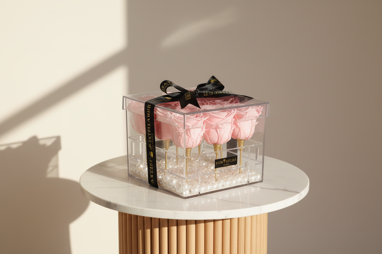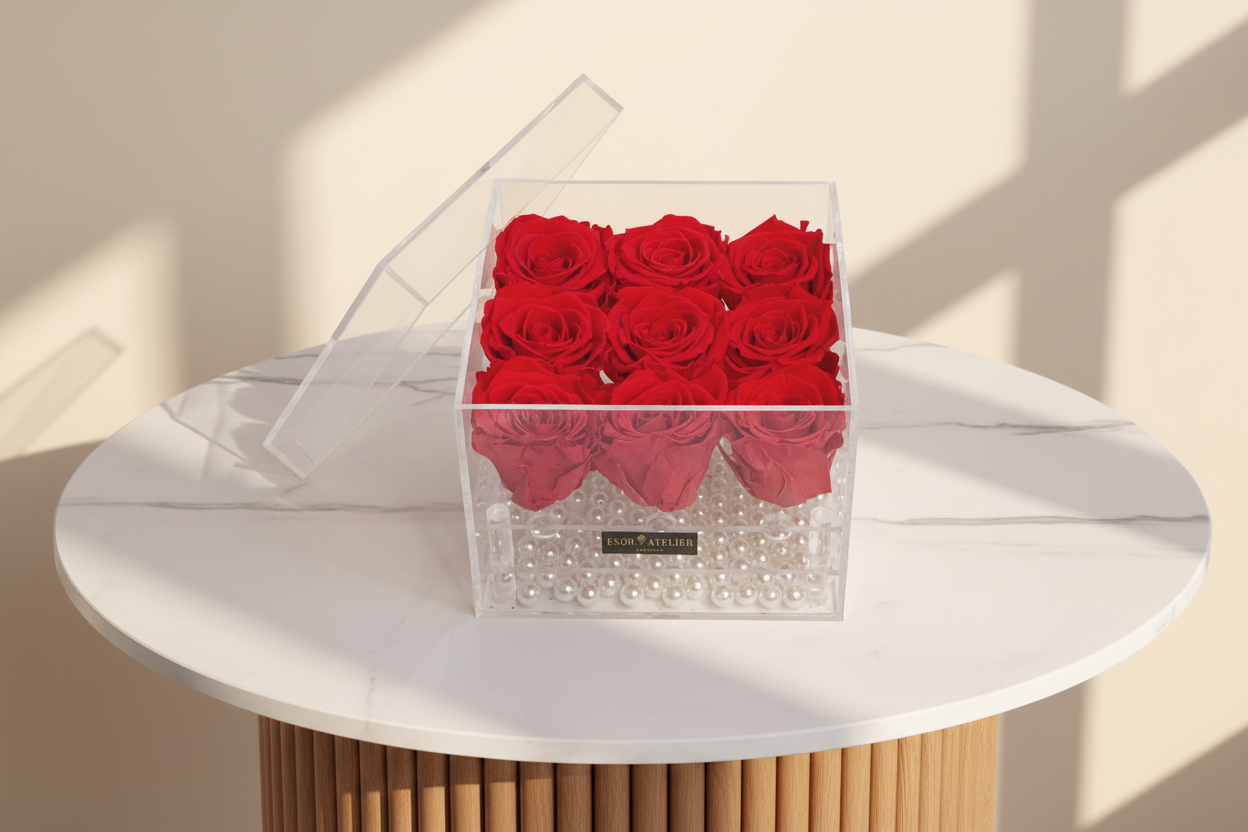 Regent diamond box encases 9 beautiful preserved roses. This exquisite keepsake reflects the beauty of love, friendship, appreciation and gratitude. Perfect gift for any occasion/ event.