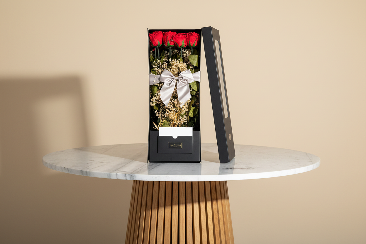 Veuillez suivre les instructions d'entretien ci-dessous pour vous assurer que vos roses et autres fleurs préservées durent 1 à 3 ans. Le non-respect de ces instructions d'entretien peut endommager les roses et réduire leur durée de conservation.
