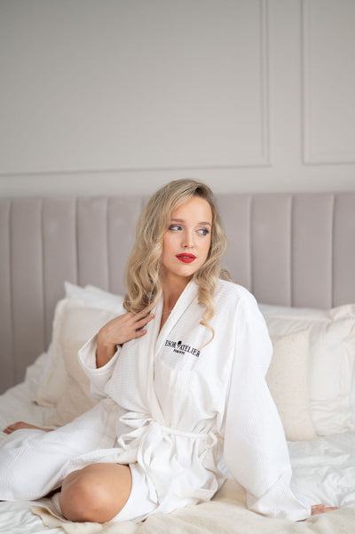Esor Atelier classic and elegant 100% cotton bath robe is a perfect gift for your loved ones. Also comes with a belt loop for style. Comes in one universal size. Esor Atelier logo is embroided on left chest side.
