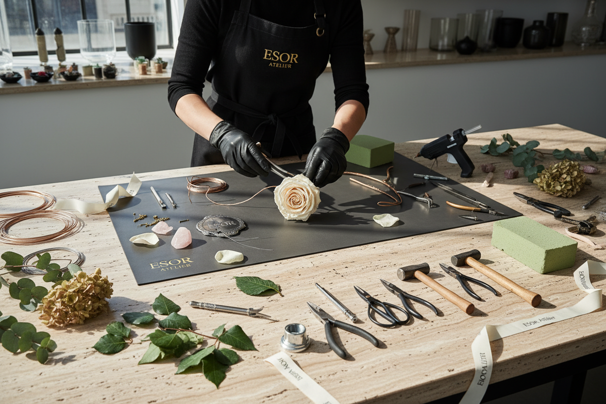 ESOR is built on clarity, restraint, and authorship. We honour tradition while shaping a new language for preserved florals and sculptural atmosphere.